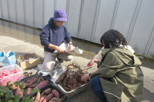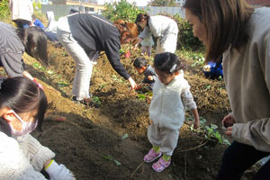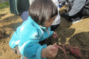 「保育内容(環境)の指導法」 親と子のひろばの子どもたちと芋掘り