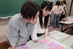 貼りだされた付箋には次の実習へ向けたヒントがたくさん並びます。真剣な表情で一つひとつの付箋を丁寧に読み込む様子が見られました。