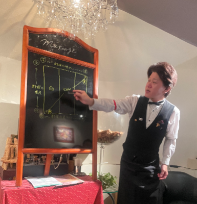 丁寧な資料と共に料理との合わせ方、ワインの選び方、チーズの道具や切り方、保存方法など実践的な内容で、みなさん、真剣に受講されていました。