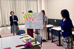 前半に講話を聞いた他、後半には本学の強みを振り返り、さらに魅力ある短大にするためにどのようなことが出来るかグループワークも行いました。