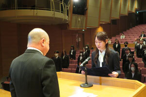 そして新入生を代表して相澤茉那さん(キャリア教養学科)が新しい一歩を踏み出す決意をしっかりと宣誓しました。